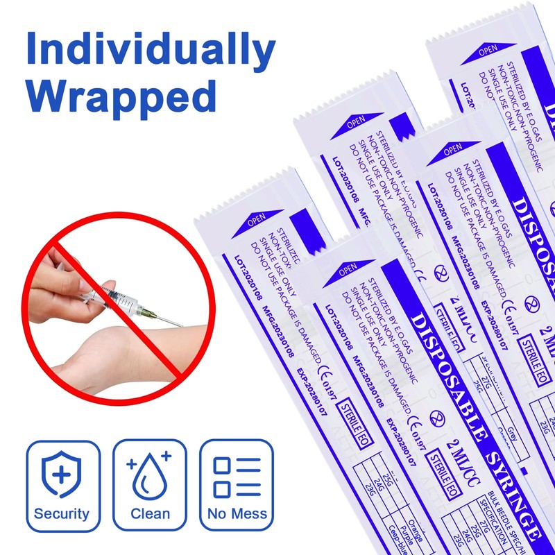 - Sealed packaging: each plastic syringe is individually packed and each sterile syringe is equipped with a tip cap, which is cleaner, safer and more sterile. These syringes are ideal for animal husbandry or veterinary medicine.