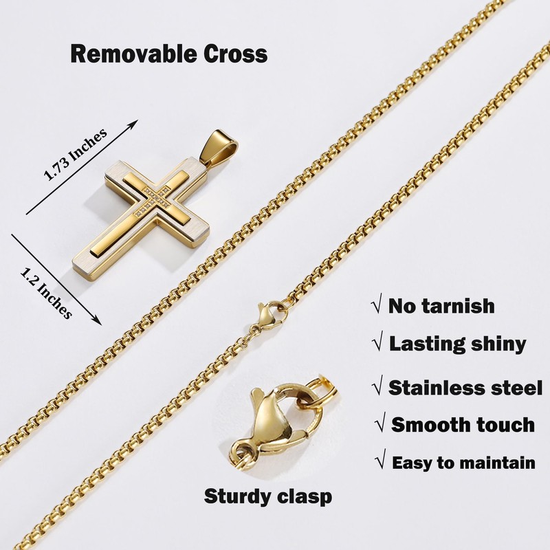 - ✅Size:Cross pendant length 1.73"(43.5mm), width 1.2"(29mm). Cross necklace chain length 28"(rolo chain),Strong and smooth edge steel cross necklace with flexible lobster clasp,easy to open and close