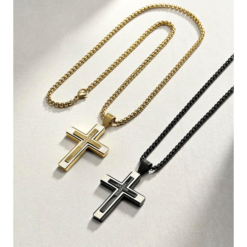 - ✅MATERIAL:Cross necklace for men made of high quality 316 stainless steel,Sparkling Cubic Zirconia,high polished and shinny on both sides of cross. Oxidation resistant, never get tarnished or change color. Lead free and hypoallergenic, Naturally aseptic to protect delicate skin.