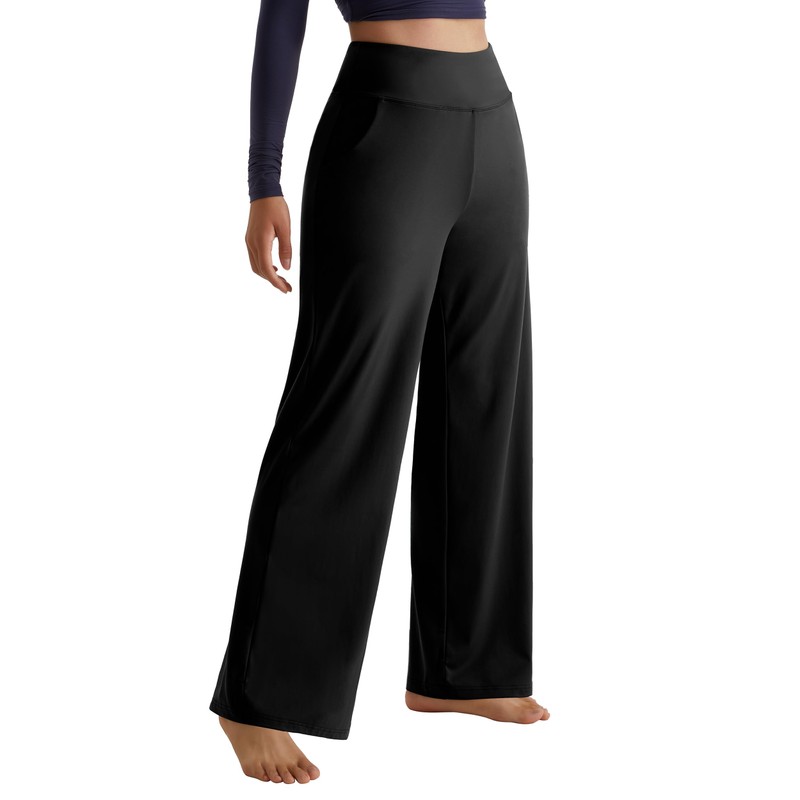 - Trouser Style Wide Leg Yoga Pants with Pockets: Trouser yoga pants with two side pockets, elastic high-rise pull-on pants, stright wide leg work casual pants.