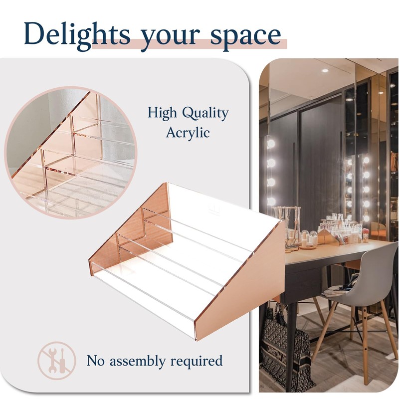 Moosy Life ML31 ピンクゴールドアクリル香水ディスプレイラック、3層