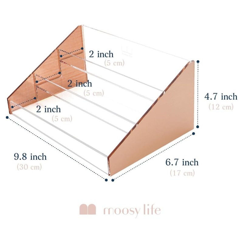 Moosy Life ML31 ピンクゴールドアクリル香水ディスプレイラック、3層