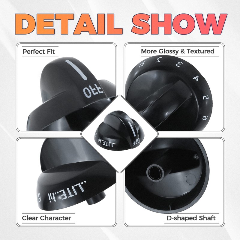 - [𝐇𝐈𝐆𝐇 𝐐𝐔𝐀𝐋𝐈𝐓𝐘]: 316220009 gas stove knob replacement is made of durable material and well-tested by the manufacturer to meet the OEM standard and ensure to support a longer service life. 316220009 cooktop burner dial knob replacement is more glossy and textured, with the advantage of corrosion resistance and temperature resistance.