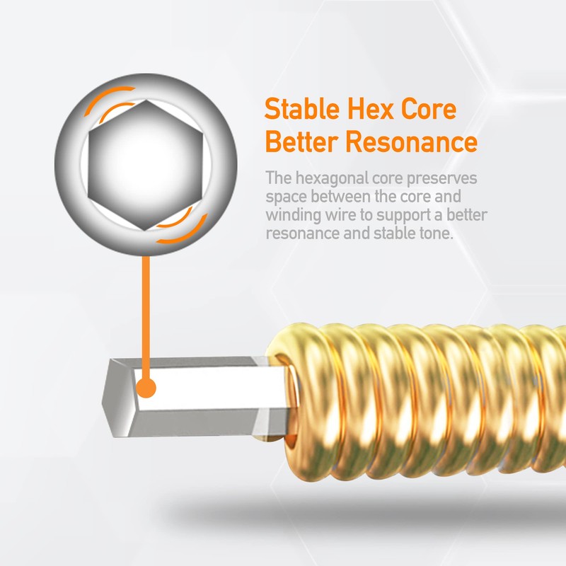 - [Stable Hexagonal Core Design] MOOZAK strings have a hexagonal core. It creates space between core and winding, enhancing resonance and tone stability, consistent sound across all environments.