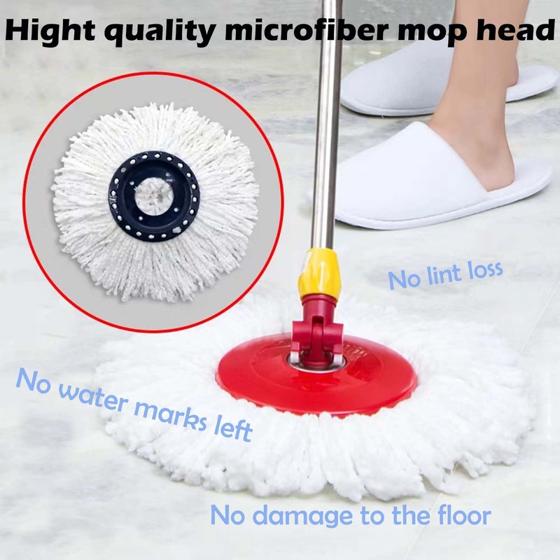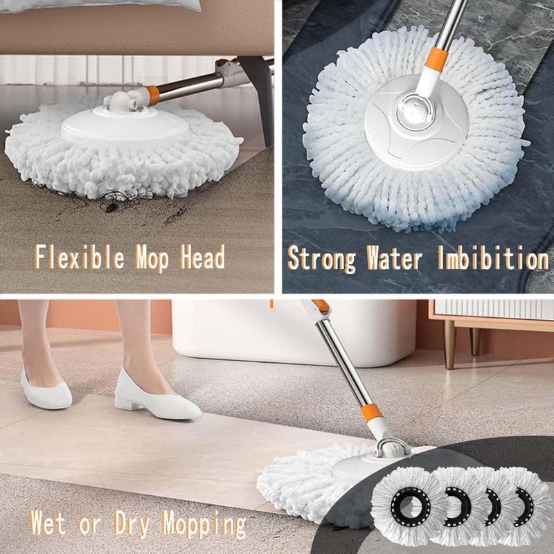 - 【Wide Application】: Our mop head was designed with consideration for its versatility. You can use this rotating mop head as a wooden floor, bathtub, or kitchen, or place it in the warehouse to remove stains from concrete floors. These highly absorbent cotton mop heads can effectively absorb water.