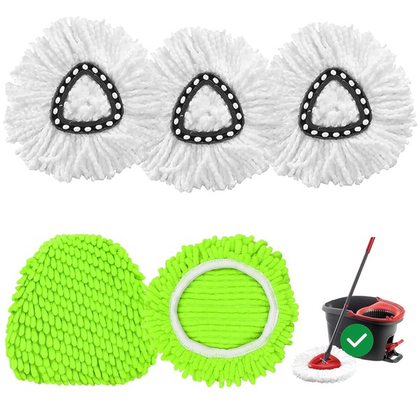 - Product List: You will get 2 pcs green mop heads replacement and 3 pcs white mop replacement heads, sufficient quantity, it can meet your daily cleaning work. Compatible with Vileda Triangle Swivel Mops.