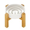 MOPANG Ceramic Slow Feeder Dog Bowls Elevated for Small Breed, Slow Feeder Cat Bowl, 0.6 Cup Dog Slow Feeder with Wooden Stand, Puzzle Bowl for Small Dogs and Cats, Maze Bowl, 6in, White