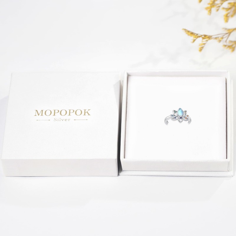 MOPOPOK 925 Sterling Silver Moonstone Lotus Ring Lotus Flower Chakra Ring With Rainbow Yoga Lotus Ring Adjustable Protecting Jewelry Birthday Christmas for Women #7, Sterling Silver, Cubic Zirconia