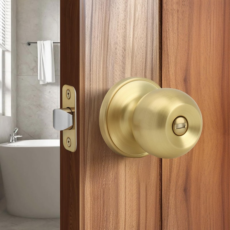 Moquin Round Ball Style Privacy Brushed Gold Door Knob, No Key Interior Door Knob, Turn Thumb Locking Doorknob for Bedroom Bathroom, Satin Brass Finish