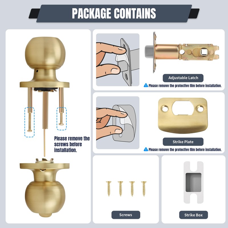 - [Excellent Design] The ball style door knob with circular linear design, perfectly accommodates palm-sized dimensions, making it an ideal complement for both luxurious and classical decor styles. Let the round door knob be the finishing touch to your home.