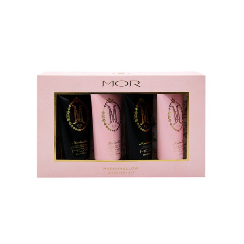 Discover a set of four beautifully scented bath & body essentials in convenient 50ml sizes for a moment of luxury at home or on-the-go. This discovery set features our Hand & Body Wash, Hand & Body Milk, Body Cream and Hand & Nail Cream in our best-selling Marshmallow fragrance.