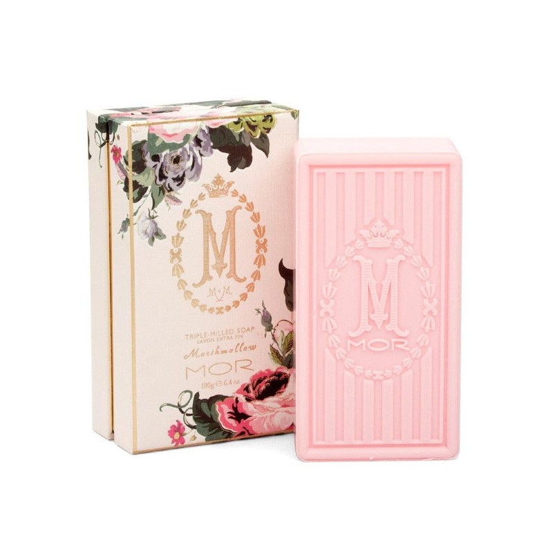 MOR Marshmallow Soap is a triple milled, heavenly scented cleansing soap. This soap creates a rich lather to gently cleanse the body without drying the skin. Rich in Shea Butter and Vitamin E for nourishing benefits and infused with the sensuous Marshmallow fragrance. Leaves the skin soft, moist and fresh.