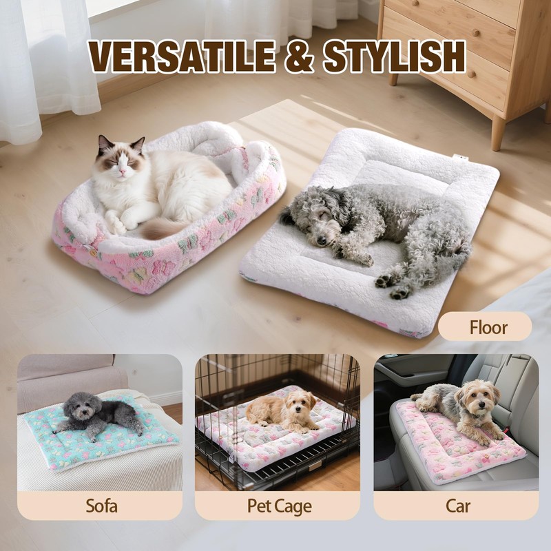 - 【MULTIPLE SIZES & COLOR OPTIONS】The kitten blanket is available in four sizes : 46*38cm , 62*42cm , 69*52cm , 80*60cm. Suitable for cats of all sizes and small to medium-sized dogs. 3 dreamy modern colours (pink, green, white) that complement your home aesthetics.