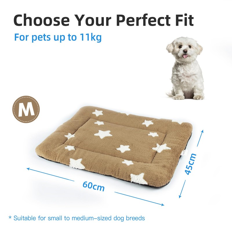 MORA PETS Medium Dog Crate Bed Mattress 60 x 45cm Washable Dog Bed Mat Soft Pet Bedding for 24 inch Cage Flat Puppy Bed Cushion with Star Pattern Brown