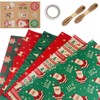 MORAINJAY 6 Sheets of Christmas Wrapping Paper, 50 x 70 cm, Christmas Wrapping Paper, 6 Different Patterns, Kraft Paper, Christmas Set with Hanging Labels, Cotton Rope for Gift Wrapping