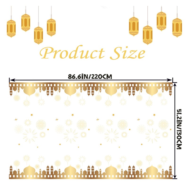 - Easy to clean: the Eid plastic tablecloths are great for picking up spilled food, drinks, paint from art and craft lessons and much more. The plastic tablecloth is waterproof and leak-proof, easy to use and easy to wipe clean roll table cover to save a lot of time.