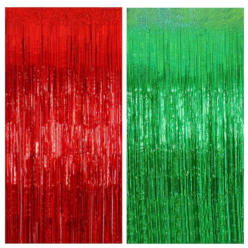 MORANTI Sparkle Red Green Aluminum Foil Tassel Curtain, 3.28 ft x 6.56 ft Merry Christmas Party Photo Booth Background Decoration (Shiny Red Green, 2 Pack)