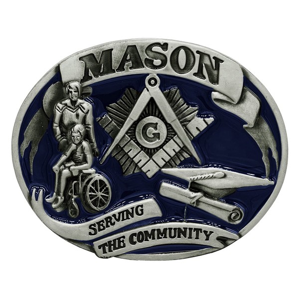 Morase Masonic Monogram Symbol Design Cowboy Belt Buckles (Serving the Community Blue)