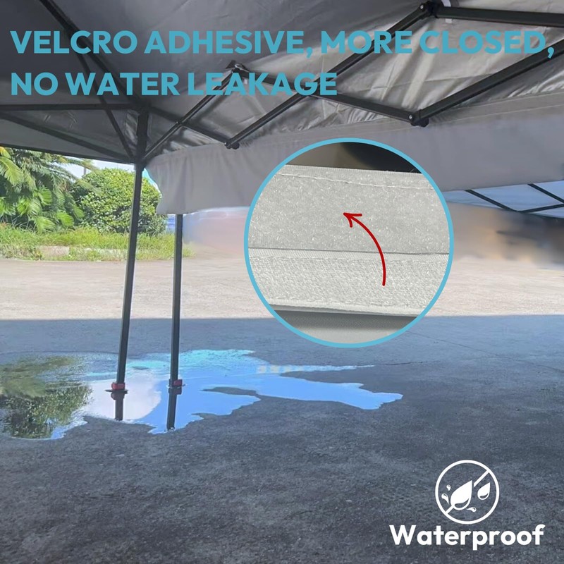 • Rock-Solid Velcro Attachment : Unlike traditional straps, our advanced Velcro (hook-and-loop) system securely fastens to your canopy’s inner edges, delivering unmatched stability against wind and rain. (Note: Requires canopy with Velcro-compatible inner edges.)