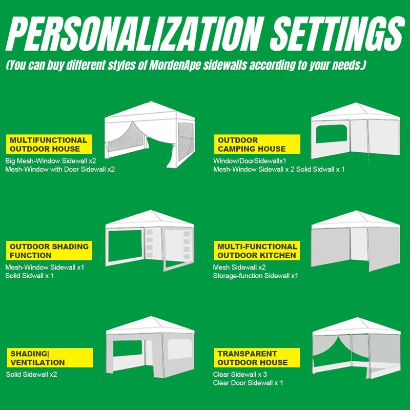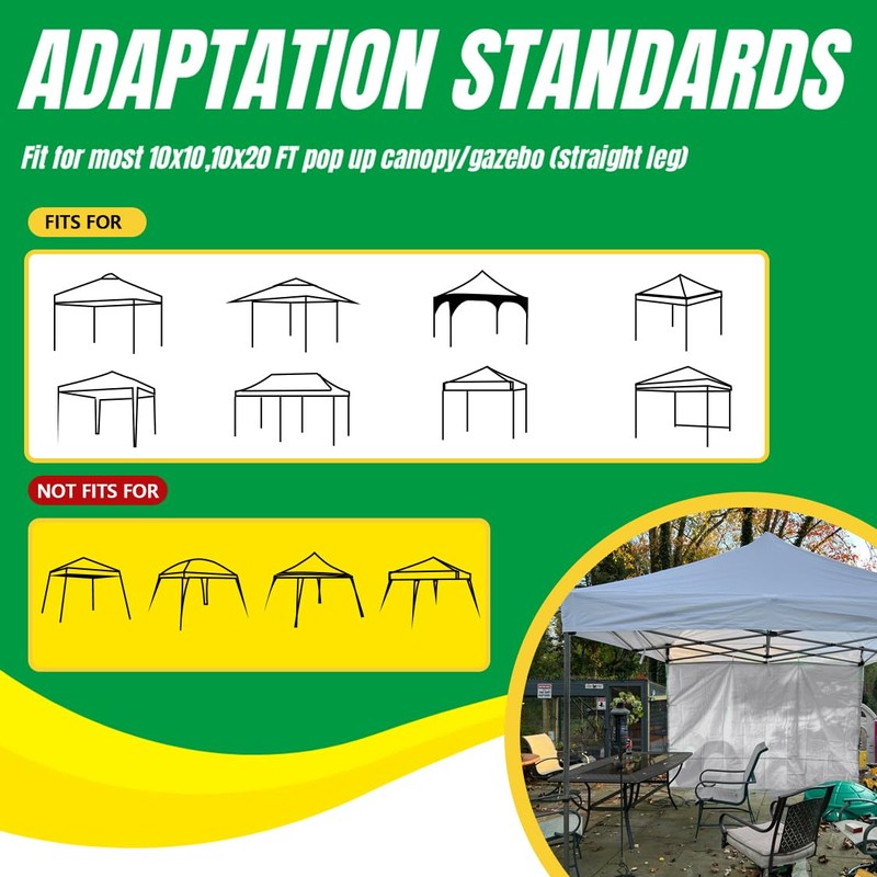 - 【DIMENSION】MordenApe Sidewall measures 120(W)x76(H) Inches, fit for most 10x10, 10x20 Feet Straight Leg pop up canopy and gazebo. The upgraded sidewalls can be spliced together with the velcro on the sides of sidewall, and it performs better than zipper connection method.