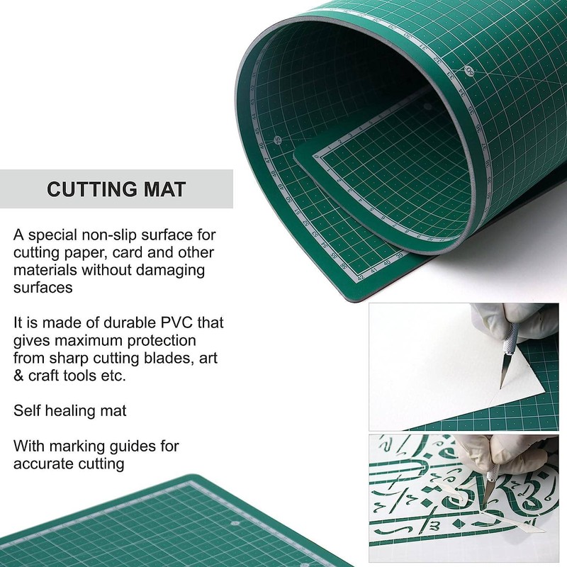 - Includes cutting mat - A3, a special non-slip surface for cutting paper, card and other materials without damaging surfaces. It is made of durable PVC that gives maximum protection from sharp cutting blades, art & craft tools etc.