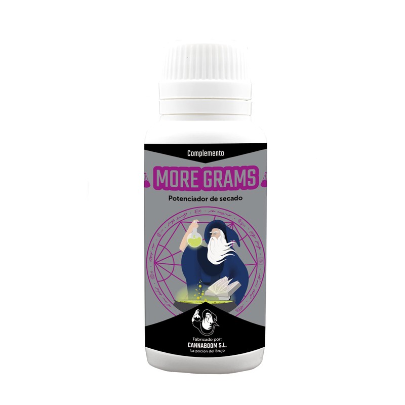 - MORE GRAMS is a worldwide unique formula that launches CANNABOOM and your harvest loses less weight in the drying process. MORE GRAMS works by filling the flowers with plant fibres, starch and protein and turns part of the water inside into mass and you will find that the flowers become fuller and denser over the days in the drying process.