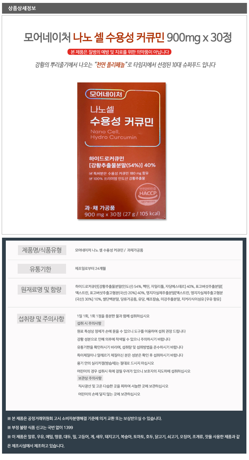 모어네이처 나노 셀 수용성 커큐민 900mg x 30정
