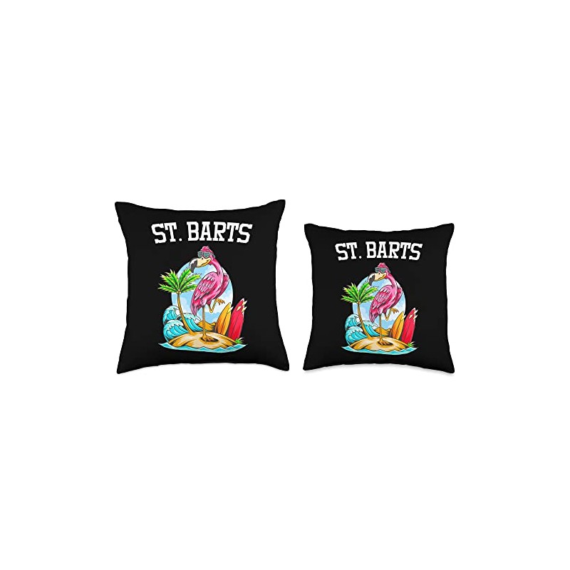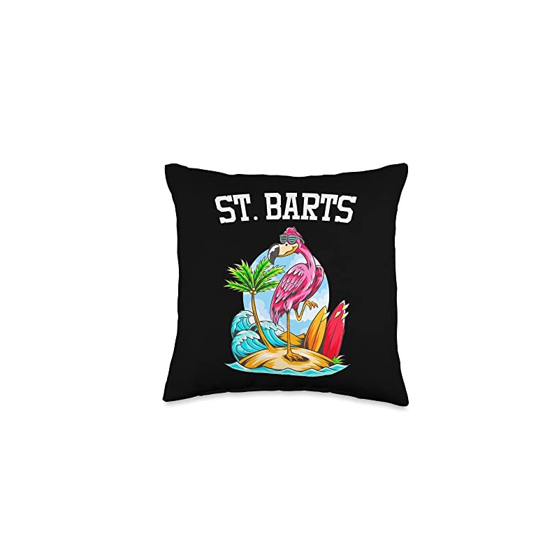 More St. Barts Surfing Spots Breaks Flamingo Ocean Beach Wave Surfboard Saint-Barthelemy Throw Pillow, 16x16, Multicolor