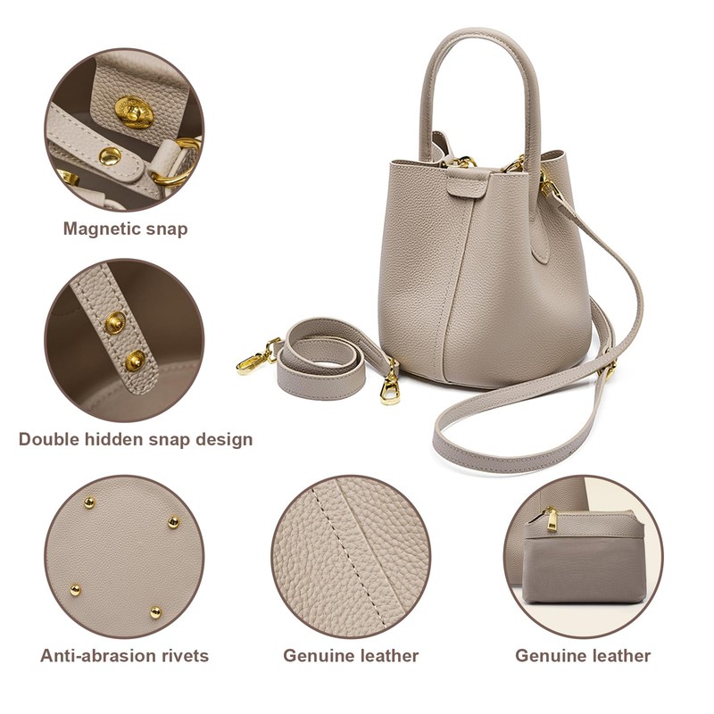 - Fashionable Bucket Design: The bucket handbag made of high-quality cowhide material can change the external contour of the bag through magnetic snap buttons, showcasing diverse styles and meeting your different needs.