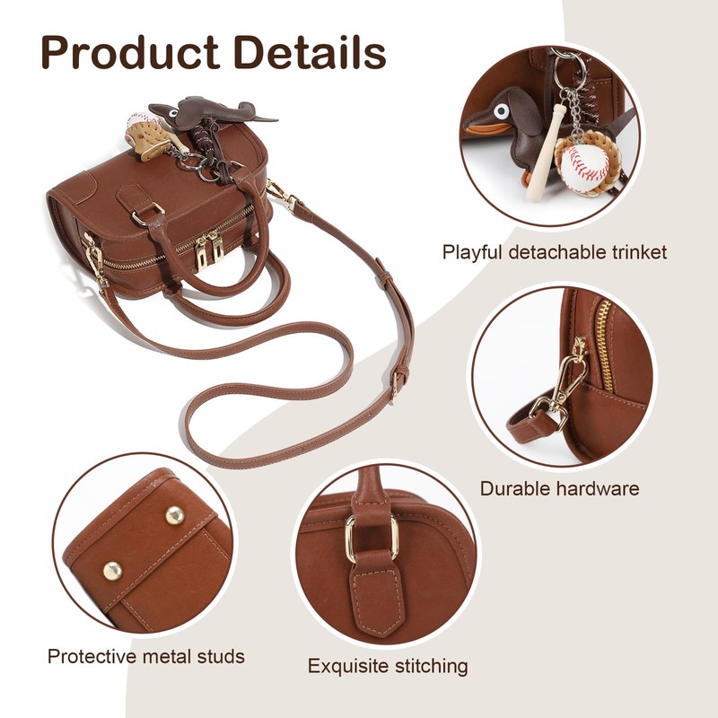 - Design Details: Features detachable adorable charms, Buttery-smooth zipper, and protective metal feet at the base. Designed for daily use, this high-quality crossbody bag is crafted exclusively for women