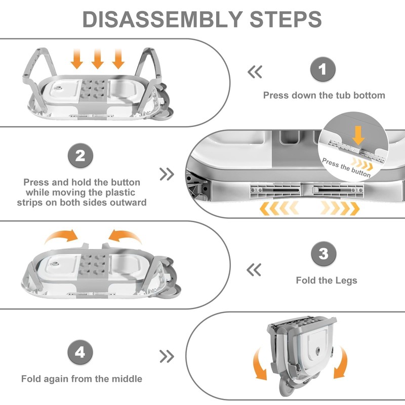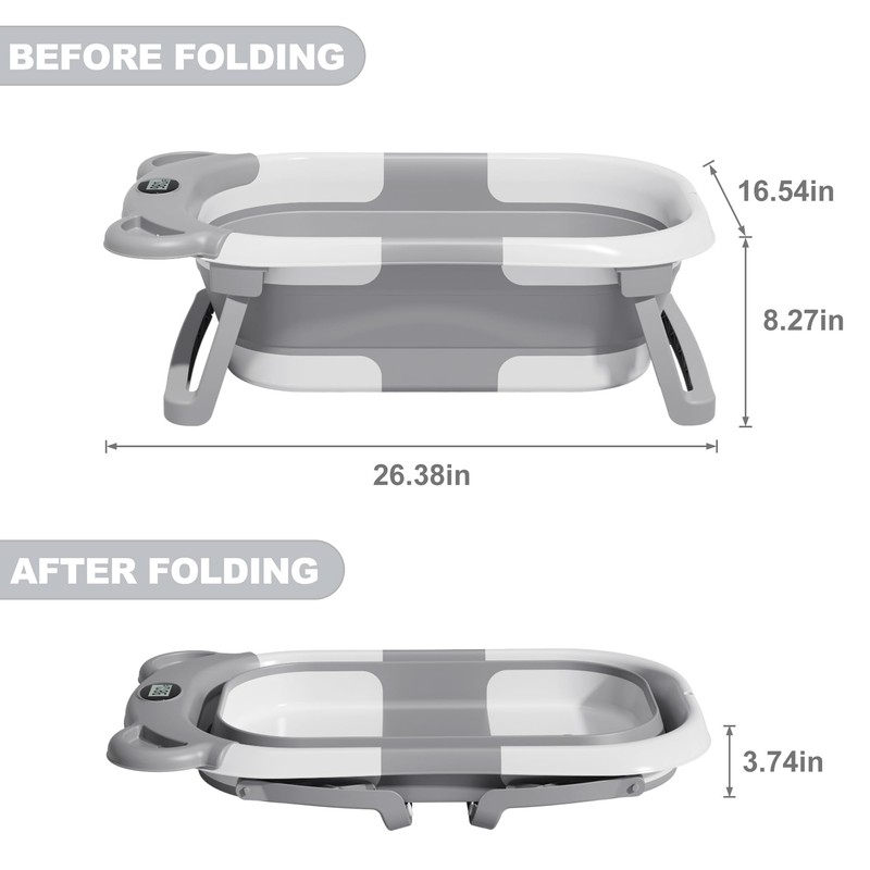 - 【Compact & Foldable】Our upgraded baby bath tub can be effortlessly folded in just two steps to a thickness of under 4 inches. It even folds in half, enabling convenient storage in any corner, making it a space-saving solution.
