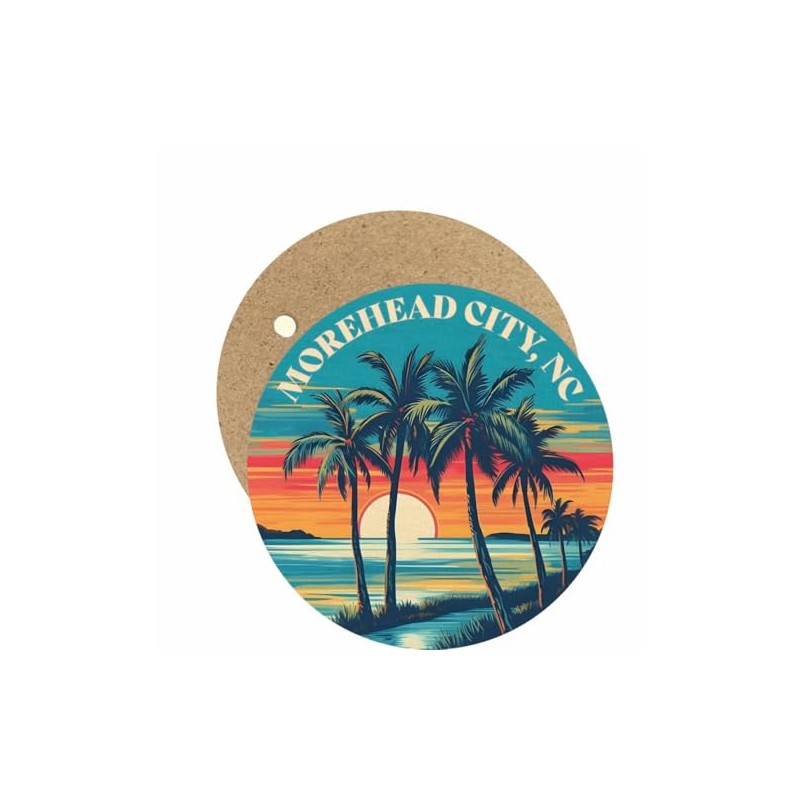 Morehead City North Carolina Beach Sunset Round Wooden 2.5" Fridge Magnet 4-Pack