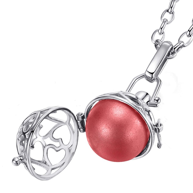 Morella Women Necklace Stainless Steel 70 cm 27,5" with Hearts Pendant with Sound Ball Red Ø 16 mm 0,63" in a Velvet Jewelry Bag
