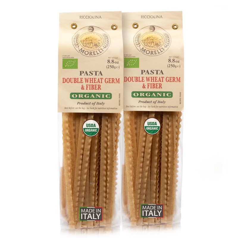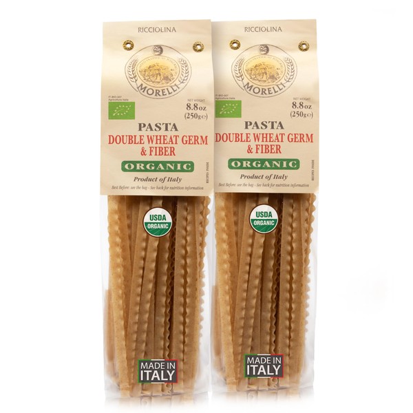 Morelli Mafalda Pasta, High Fiber Mafaldine Pasta, Imported from Italy (Ricciolina, Reginette With Bran and Double Wheat Germ) - 8.8 oz / 250 g (Pack of 2)