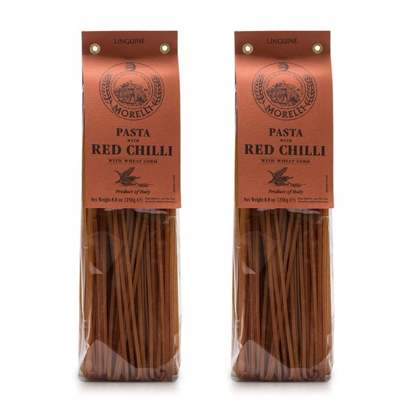 Morelli Red Chili Linguine Pasta with Wheat Germ- Imported Pasta from Italy - 8.8oz (250g) Pack of 2
