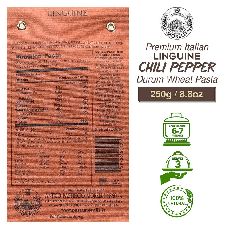 Morelli Red Chili Linguine Pasta with Wheat Germ- Imported Pasta from Italy - 8.8oz (250g) Pack of 2 by ANTICO PASTIFICIO MORELLI 1860 PASTA AL GERME DI GRANO Store