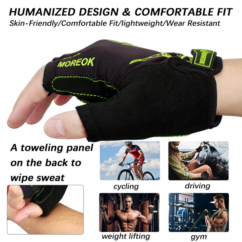 MOREOK Cycling Gloves Bike Gloves for Men/Women-[5MM Gel Pad] Biking Gloves Half Finger Bicycle Gloves Exercise Workout Gloves for Cycling/Weight Lifting/Gym/Motorcycle/Rowing Green-M