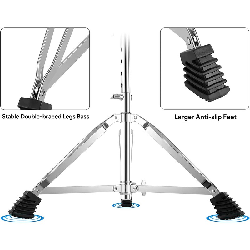 - Anti-slip Pad Design: The drum throne adopts double-supported tripod legs and has 3 large supporting rubber feet for strong grip. Make sure that the drummer does not shake when hitting. The legs of the drum stool adopt a folding design, which is easy to carry.