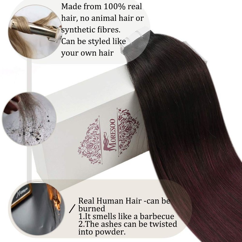 - 【Remy Hair Extensions】Moresoo tape in hair extensions is 100% human hair tested by AUTHORITATIVE ORGANIZATIONS, with a certificate. No damage, no tangle, soft and silky while still feeling natural.