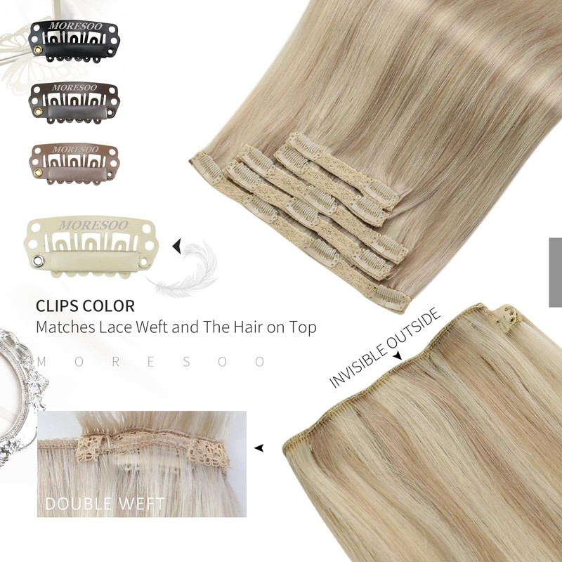 - Advantages: clip in hair extensions feature soft lace double wefts, which enhance both comfort and fit your head. The clips design seamlessly matches the color at the hair roots, creating a flawless blend, easier to wear and take off.