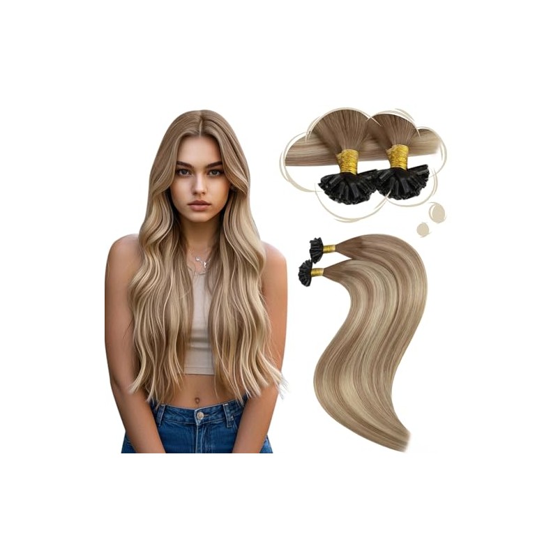 Moresoo U Tip Hair Extensions Real Human Hair Brown Root Ombre to Platinum Blonde with Light Brown Keratin Hair Extensions Straight Human Hair Extensions 24 inch 50g/50s #8/22/8