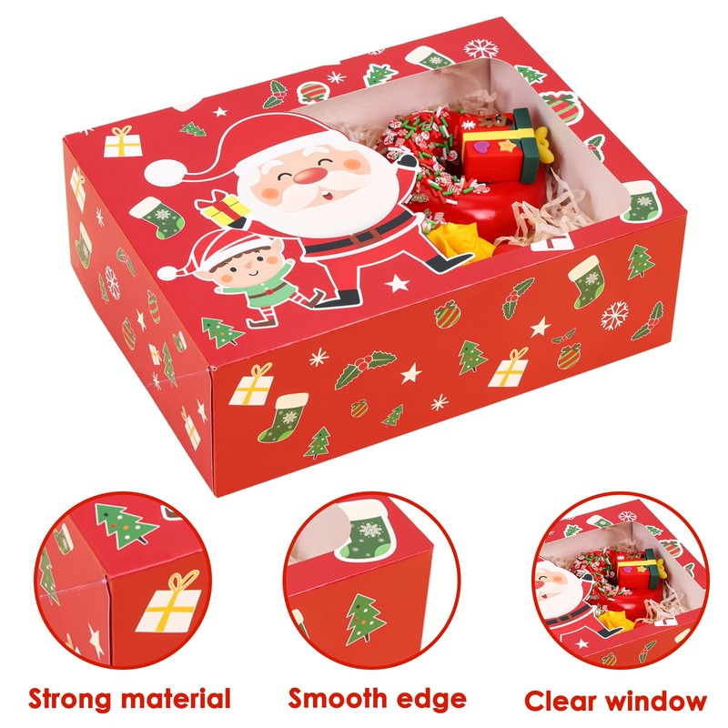 - Widely Use: Our Christmas bakery boxes are designed for holding cupcakes, cookies, biscuits, pies, chocolate brownies, donuts, or candies. These Christmas treat boxes also suitable for gifts and other snacks. They can be used as Christmas decorations, gift wrapping, gift decoration, party decoration.