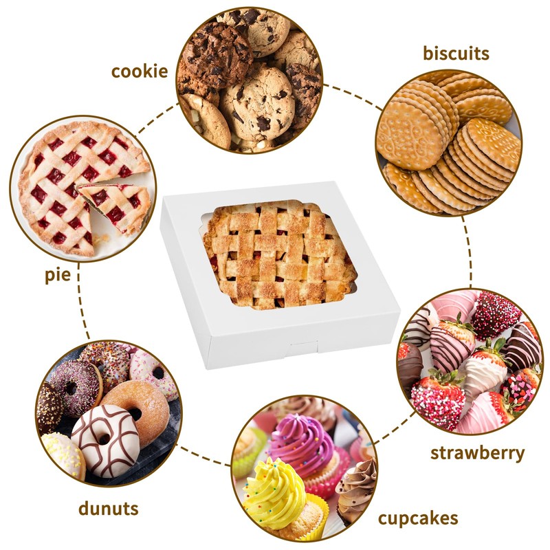 - Perfect Structure: The pie box has a transparent window, which is the perfect way to showcase customized products. We have improved the folding method so that these cookie boxes will not scatter after being folded.