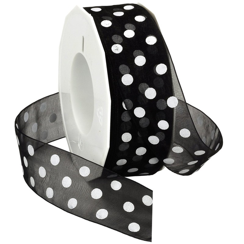 Morex Ribbon Sheer Ribbon, Black/White Dots