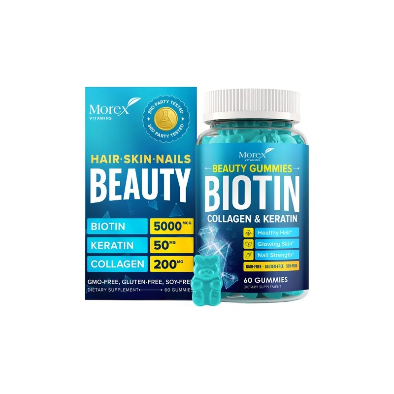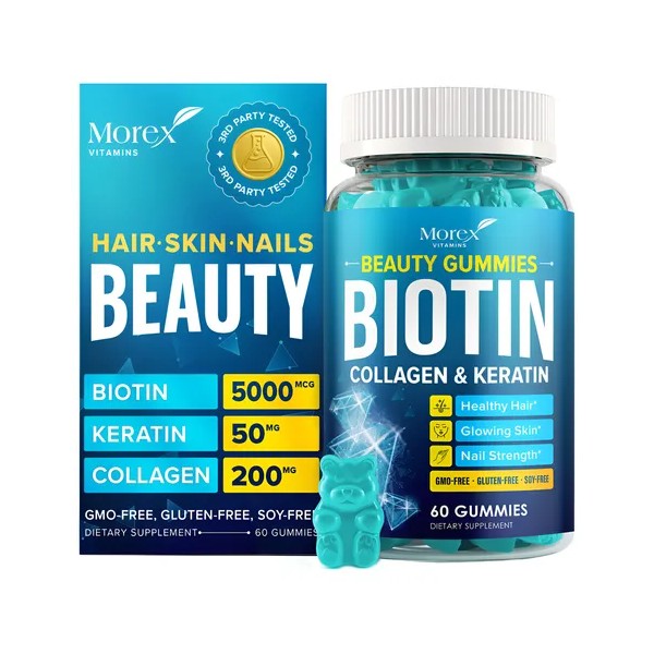 - Vitaminas Naturales para el Cabello - Más vitaminas Morex: Biotina, Colágeno y Queratina en gomitas para apoyo nutricional del cabello, piel y uñas. Con acción triple que promueve crecimiento y grosor del cabello, fortalece uñas y apoya la piel contra envejecimiento. También formulado para cabello largo.