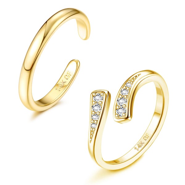 Morfetto 14K Gold Filled Toe Rings for Women Adjustable Open Pinky Rings Huge Band CZ Three Row Gold Toe Rings Foot Jewelry 2Pcs Hug