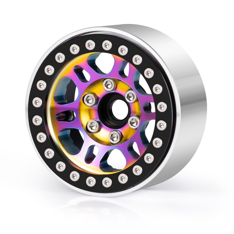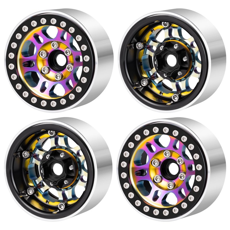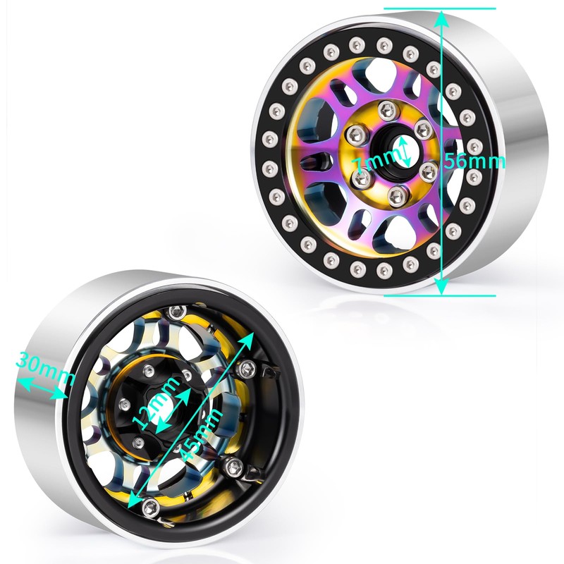 MORFUM 1.9" Rainbow RC Rim 4pcs Aluminum 56mm Beadlock Wheels Rims 12mm Hex Negative Offset Deep Dish Wheel for 1/10 RC Crawler Car SCX10 TRX4 Upgrade Parts