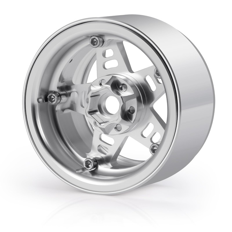 MORFUM 4Pcs Aluminum Alloy 2.2 Inch Beadlock Wheel Hub Rims Width 35mm Length 64mm 5-Spoke Wheel Rim Compatible with 1/10 Axial SCX10 90046 1/14 MJX 14210 RC Car Upgrade Replacement (Silver)