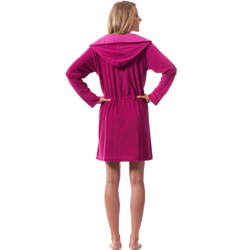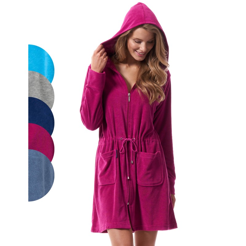 - Thanks to the warming hood, the women's bathrobe, tested according to Öko-Tex Standard 100, protects your wet head from over-cooling and provides pleasant warmth at any time when relaxing in the wellness area.