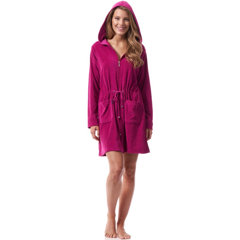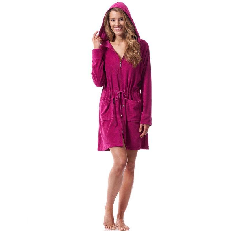 Morgenstern Ladies’ Bathrobe with Zip and Hood (Emily) - berry, size: l